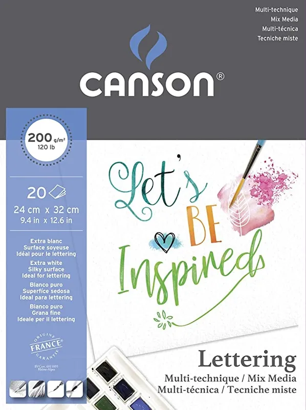 Bloc de papel diseñado por Canson para la práctica del Lettering. Papel suave, blanco puro y muy liso.Tamaño A4Gramaje: 200 gr/m220 hojas