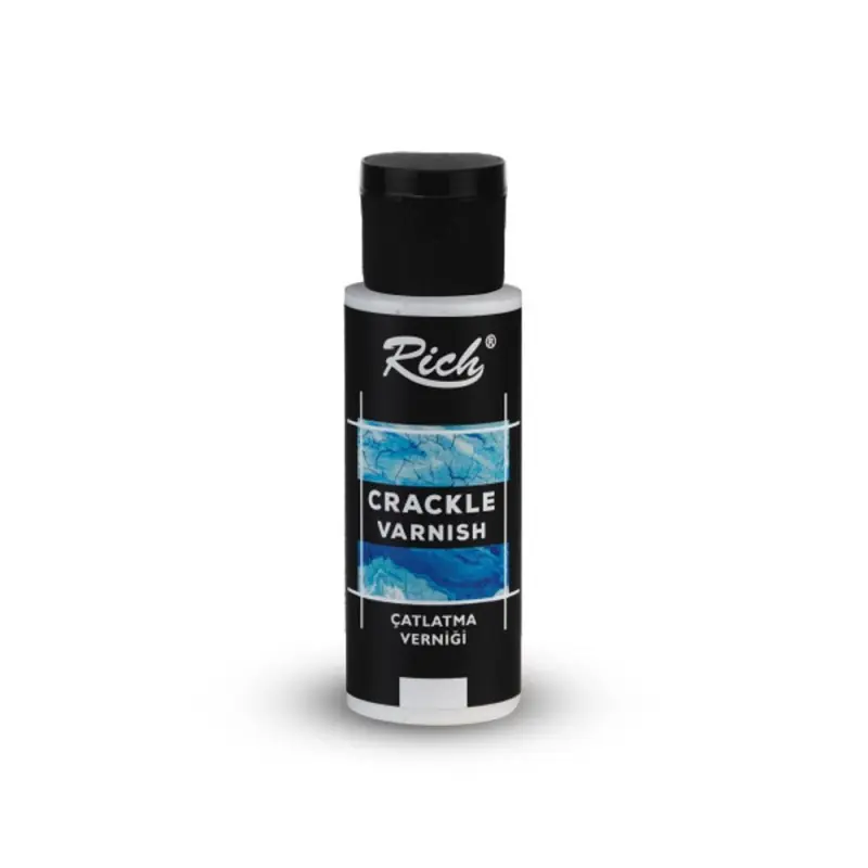 Es un producto a base de agua que se utiliza para preparar efectos de agrietado ancho necesarios en trabajos decorativos y de hobby. Se aplica aplicando sobre el medio de craqueo. Se debe esperar un tiempo de secado natural. Se vuelve transparente en la superficie mientras completa la reacción de craqueo. Se puede utilizar cera con tiza, crema de envejecimiento o cera para dedos para colorear los espacios del tejido como resultado del agrietamiento.