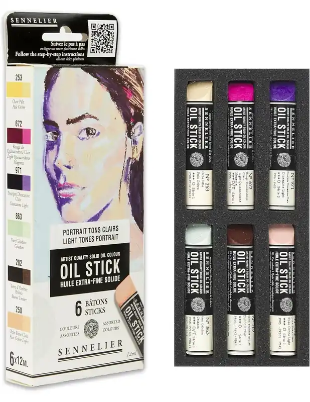 CAJA CON 6 BARRAS DE OLEO PEQUEÑAS COLORES CLAROS SENNELIER Máxima Calidad