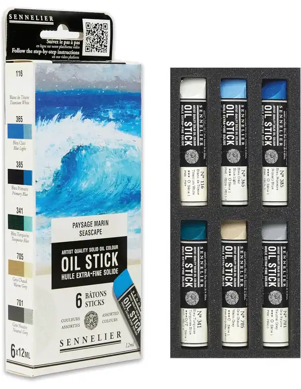CAJA CON 6 BARRAS DE OLEO PEQUEÑAS COLORES MARINOS SENNELIER Garantía De Devolución De Dinero
