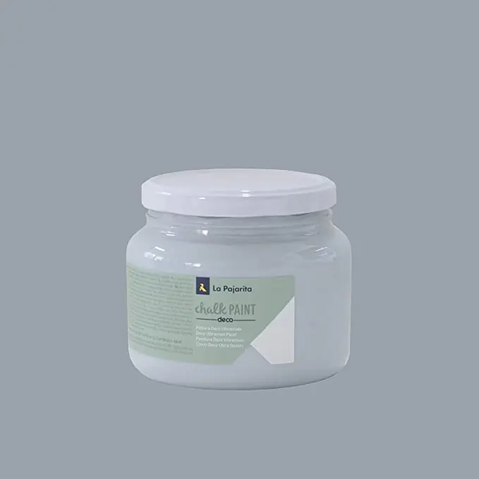 La Chalk Paint de La Pajarita es una pintura a la tiza de acabado ultra-mate, muy fácil de usar y que no requiere preparación de la superficie. ¡Decora, restaura y dale una nueva vida a tus muebles!- Base agua- Apta para su uso en juguetes y material infantil gracias a la regla EN71-3.- Alta cubrición y adherencia- Muy resistente al paso del tiempo y a la humedad.- Secado rápido- Rendimiento: 10-12 m2/litro