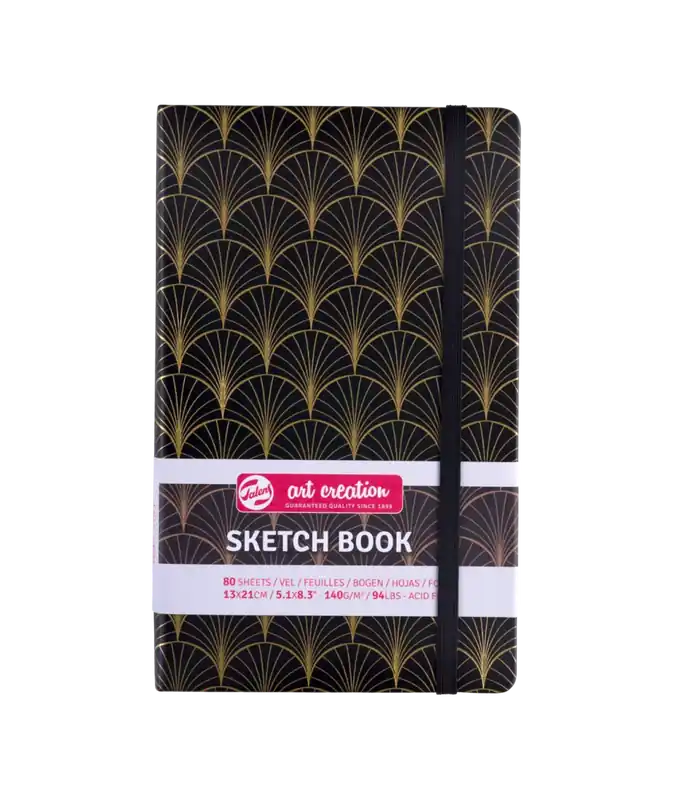 Bloc de bocetos de la marca Art Creation de Talens con dibujo Art Decó en la portada y trasera.Las principales características de este sketch book son:80 hojaspapel libre de ácidos de 140 grscubierta de color azultamaño 13 x 21 cms.goma para evitar que se abra mientras se transporta.Técnicas recomendadas: lápiz,rotulador,pastel,bolígrafo…