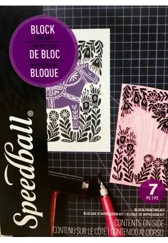 Conjunto de la marca Speedball perfecto para iniciarse en el mundo de la xilografía,el grabado en linóleo o en bloques de goma y vinilo.Contiene:Tinta soluble en agua de 37 ml color negroRodillo de caucho suave Pop-in nº 49Mango y tres cortadores para el mango de linóleoBloque de grabado Speedy CarveManual de instrucciones