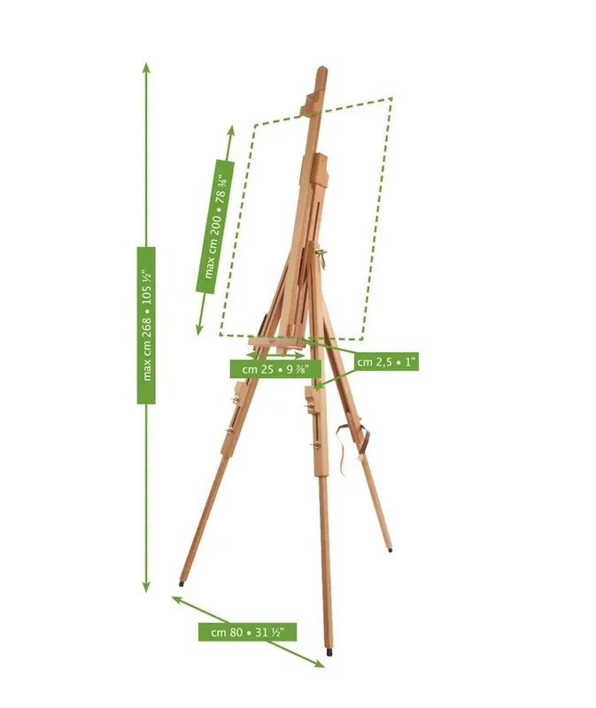 Caballete de campo de la marca Mabef modelo 32El formato más grande en caballete plegable.Peso 4 kilosCaballete diseñado para exterior (también se usa en espacios reducidos o para exponer carteles)Puede usarse para pintar con óleo o acrílicos.También válido para pintar acuarelas o pastel ya que se puede colocar de forma horizontal.Con la calidad de acabados de la marca italiana Mabef