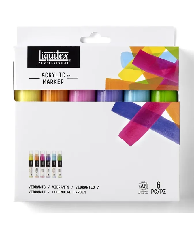Rotuladores de la marca de acrílicos Liquitex en la selección de colores vibrantesDe la marca de acrílicos Liquitex surgió la innovadora opción de usar los mismos acrílicos pero en versión rotuladorCómodo de usar y limpio,permite hacer trazos más controlados que con los pinceles.Muy usado para murales y formatos grandes y esbozosSe pueden mezclar con todo tipo de acrílicos ( en formato tradicional,en spray…) y también se puede pintar encima con otros tipos de pintura como óleos o esmaltesPunta recta de 15 mm ( 1,5 cms.)
