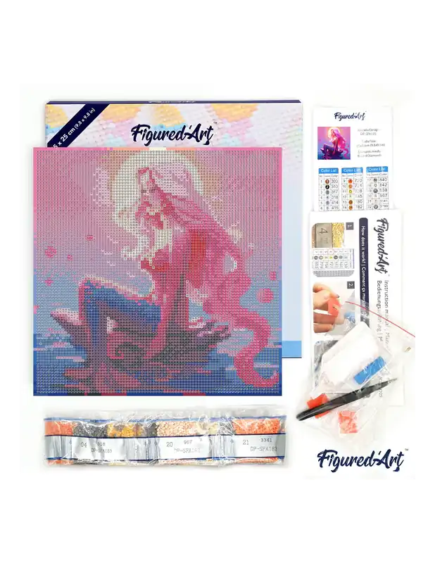 Modelo: SIRENA ROSATécnica: Diamond Painting / Punto de Cruz DiamanteTamaño y formato: 25x25cm con lienzo montado sobre bastidor de maderaForma de los diamantes: RedondoSoporte: Lienzo adhesivo de primera calidad con símbolosEste magnífico kit de Diamond Painting de 25x25cm con diamantes cuadrados sobre bastidor contiene todo lo que necesitas para crear tu obra :- 1 lienzo adhesivo de primera calidad, numerado según el motivo a crear y ya montado sobre un bastidor. Una placa de madera en la parte posterior de la lona proporciona una rigidez perfecta para aplicar los diamantes.- Bolsas individuales numeradas de diamantes (+30% más diamantes para asegurarse de que tenga suficientes).- 1 Aplicador + 2 cabezas de aplicador adicionales (puede agarrar y pegar 6 y 9 diamantes al mismo tiempo).- 1 Pinzas- 1 Bandeja con embudo- 1 placa de cera para agarrar fácilmente los diamantesPuedes ver más modelos pinchando aquí