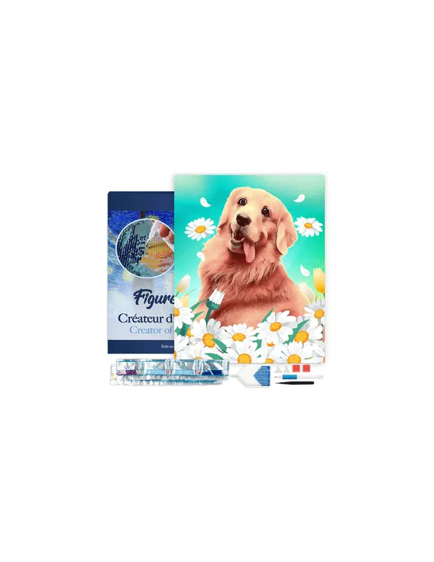 Modelo: GOLDEN RETRIEVETécnica: Diamond Painting / Punto de Cruz DiamanteTamaño y formato: 40X50cm con lienzo montado sobre bastidor de maderaForma de los diamantes: CuadradosSoporte: Lienzo adhesivo de primera calidad con símbolosEste magnífico kit de Diamond Painting de40x50cm con diamantes cuadrados sobre bastidor contiene todo lo que necesitas para crear tu obra :- 1 lienzo adhesivo de primera calidad, numerado según el motivo a crear y ya montado sobre un bastidor. Una placa de madera en la parte posterior de la lona proporciona una rigidez perfecta para aplicar los diamantes.- Bolsas individuales numeradas de diamantes (+30% más diamantes para asegurarse de que tenga suficientes).- 1 Aplicador + 2 cabezas de aplicador adicionales (puede agarrar y pegar 6 y 9 diamantes al mismo tiempo).- 1 Pinzas- 1 Bandeja con embudo- 1 placa de cera para agarrar fácilmente los diamantesPuedes ver más modelos pinchando aquí
