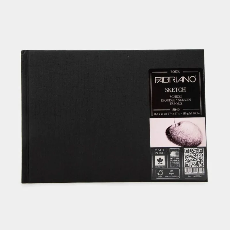 Bloc de esbozo Fabriano A5 cosido horizontal 110 gr/m2 80 hojas.Papel libre de ácidos.Tapa extra dura.14,8×21 cm.