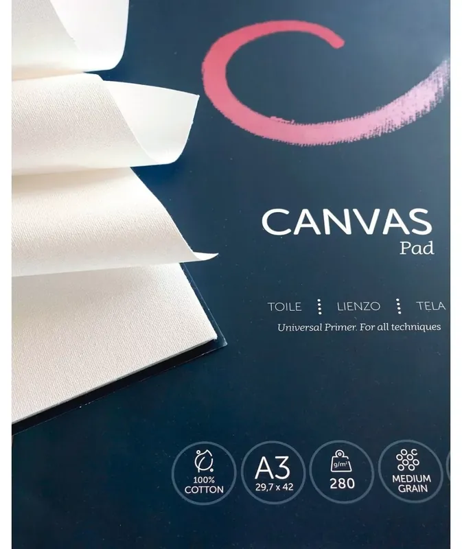 Bloc con hojas de tela de lienzo en tamaño A310 hojas encoladas en el lado largoLienzo preparado de 280 grs para pintar con óleos,acrílicos,témperas…