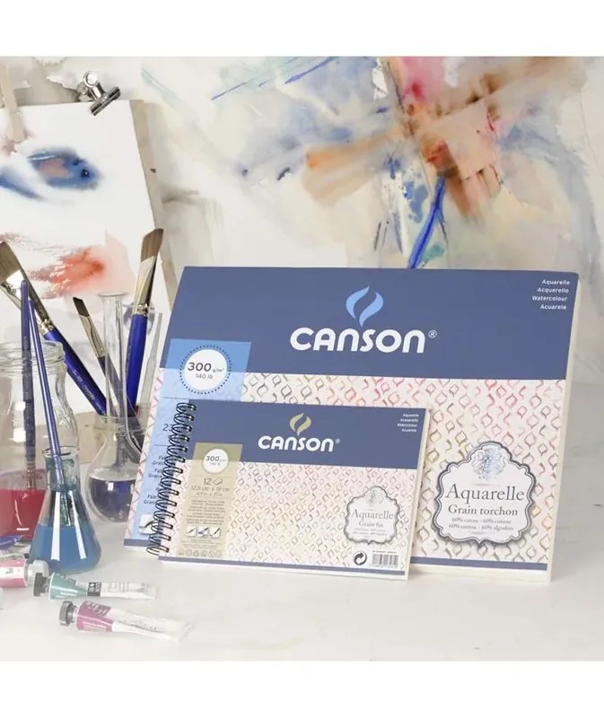 Bloc Aquarelle Canson encolado en los cuatro ladosEs un papel para acurela fabricado en máquina de forma redonda usando el procedimiento más tradicional.Contiene un 60% de algodón y sus materias primas han sido especialmente seleccionadas para aportar a este papel una reputación de excelenciaTamaño: 41 x 31 cms Hojas : 20 hojas encoladas en los cuatro ladosGramaje: 300 grs.y grano finoAlgodón: 60% de algodónColor: blanco rotoOtras características: sin ácido,con reserva alcalina y tratamiento antifúngico para garantizar la durabilidad.Sin blanquadores ópticos.Técnicas: para acuarela y cualquier técnica al agua