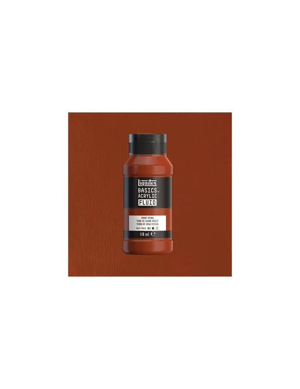 Los acrílicos Liquitex Basics Acrylic Fluid son una línea de pinturas acrílicas de alta calidad, conocida por su consistencia suave y fluida que las hace ideales para técnicas de vertido, salpicado y detalles finos. Ofrecen una amplia gama de colores duraderos y de secado rápido, y son compatibles con una variedad de superficies. Estas pinturas son apreciadas por artistas de todos los niveles debido a su versatilidad y asequibilidad. Con 48 colores vibrantes satinados, están elaborados con los mismos pigmentos de alta calidad que la Gama Básica de Colores Acrílicos de Liquitex, lo que les otorga un acabado permanente y resistente al agua una vez secos. LIQUITEX ACRILICO BASICS FLUIDO 118ML TIERRA DE SIENA TOSTADA