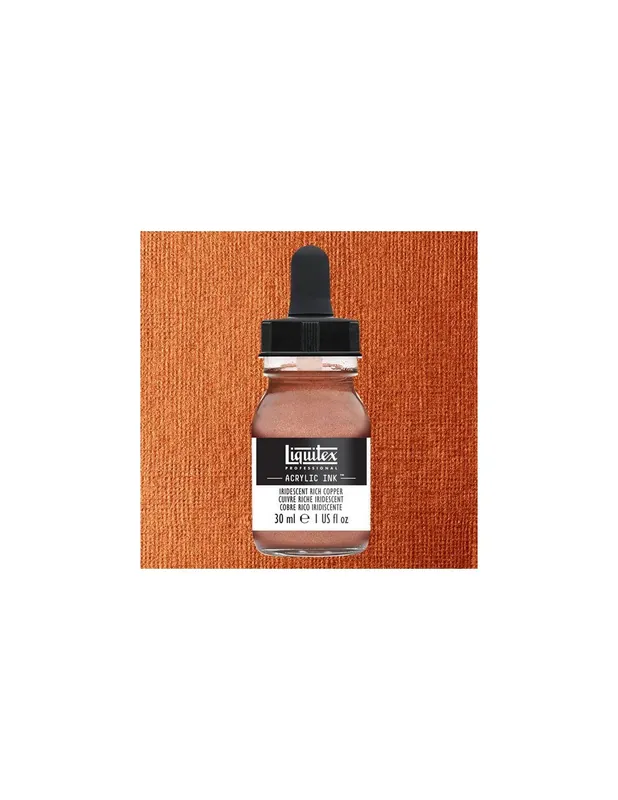 Las pinturas Liquitex acrylic Ink son extremadamente fluidas, permanentes, resistente al agua, no se atascan, el secado es rápido y son mezclables con acrílicos y médiums Liquitex. Presentada en un frasco de cristal de 30 ml con cuenta gotas. Color tono amarillo de cadmio. También se utuilizan para aerografia, y para crear efectos en acuarelas. LIQUITEX TINTA ACRILICA 30ML COBRE RICO IRIDISCENTE