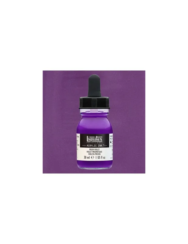 Las pinturas Liquitex acrylic Ink son extremadamente fluidas, permanentes, resistente al agua, no se atascan, el secado es rápido y son mezclables con acrílicos y médiums Liquitex. Presentada en un frasco de cristal de 30 ml con cuenta gotas. Color tono amarillo de cadmio. También se utuilizan para aerografia, y para crear efectos en acuarelas. LIQUITEX TINTA ACRILICA 30ML VIOLETA PRISMA