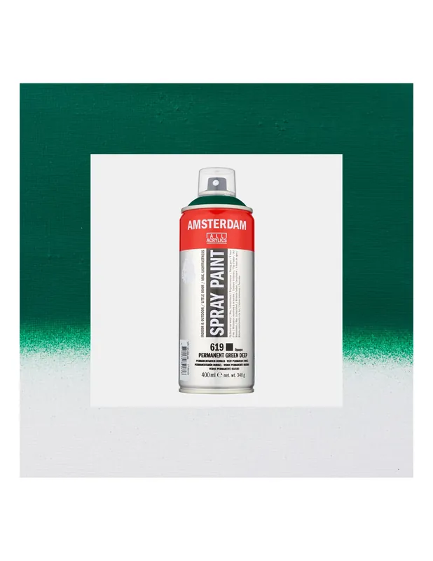Nuestras pinturas en espray, a diferencia de las pinturas en espray tradicionales, son ideales para su uso en el estudio por su fórmula a base de agua.SPRAY AMSTERDAM 400ML 619 VERDE PERMANENTE OSCURO