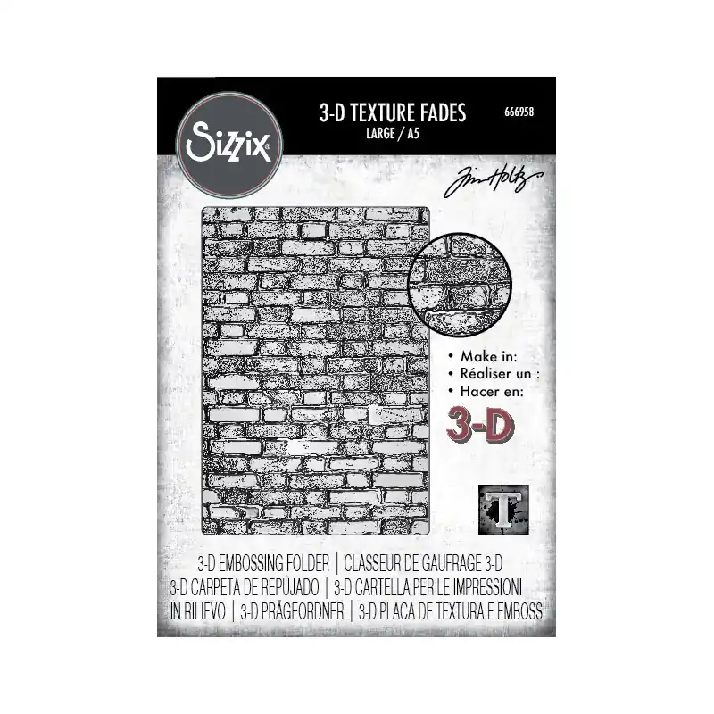 ✨? Tim Holtz 3-D Texture Fades Embossing Folder – Brickwork Large/A5 ?✨¡Sumérgete en un mundo de patrones fascinantes con esta carpeta de estampado en relieve! Su diseño aporta un efecto dinámico y texturizado que hará que tus proyectos cobren vida. Solo pásala por tu máquina Big Shot para crear impresiones en relieve llamativas y tridimensionales.Perfecta para tarjetas, páginas de álbumes de recortes y manualidades diversas, su tamaño A5 permite trabajar cómodamente sobre superficies más grandes, agregando detalle y sofisticación a cada creación.Incluye: 1 carpeta de relieveMaterial: plástico PPDimensiones del diseño: 15,24 cm x 21,59 cm✨ Ideal para proyectos que requieren impacto visual, textura y un acabado profesional.