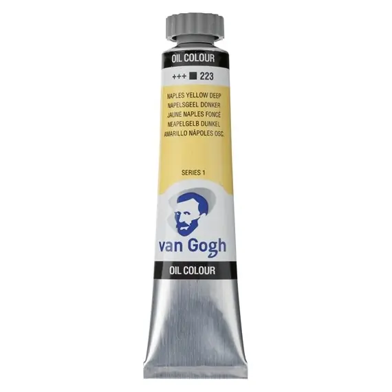 Si buscas las mejores pinturas al óleo, esta gama de Van Gogh, producida en Holanda, es ideal para ti. Un óleo de gran pastosidad que proporciona un excelente poder colorante, un alto nivel de pigmentación para lograr colores intensos, un grado uniforme de brillo y densidad y un grado bueno o excelente de resistencia a la luz. Fácil de mezclar y aplicar Estos óleos son magníficos para principiantes, estudiantes en niveles avanzados y artistas en activo. Este tubo de 40 ml de Amarillo Nápoles oscuro 223 opaco está elaborado con pigmento(s) PW6/PY154/PBr24 y posee un grado de resistencia a la luz de +++ (más de 100 años en iluminación de museo). Serie 1.