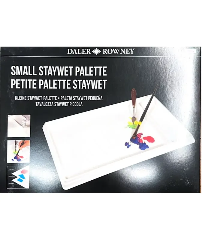 Paleta húmeda de la marca Daler Rowney tamaño grandeCon 3 hojas de papel reserva incluidas y 12 de membrana semipermeable.Tamaño 49,5 x 29 cms.Esta paleta Stay wet funciona por ósmosis.Los colores acrílicos se secan por evaporación pero si están sobre la membrana de la paleta Stay wet de Daler Rowney el agua que se evapora se sustituye por la humedad que penetra desde el papel secante a través de la membrana semipermeable.Esto le permite al artista pintar durante todo el día sin tener que cubrir los colores.Cuando no se utilicen los colores se han de cubrir con una tapa transparente para reducir la evaporación y permitir que se mantengan húmedos y utilizables durante horas.Si se añade agua al papel secante estarían aptos para trabajar más tiempo.Incluye pack de recambios de las hojas interiores extra.(en total 6 hojas de papel reserva y 24 de membrana semipermeable).