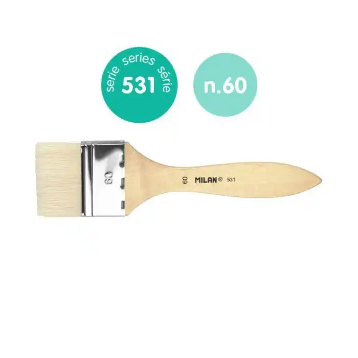 Paletina con mango corto de madera, barnizada en color natural y virolaniquelada. Composición: pelo natural de cerda Chungking. Adecuado para pintura al óleo y acrílico, cola y barnices. Anchura del pelo: 60 mm. Longitud del pelo: 35,9 mm. Longitud de la paletina: 225 mm.