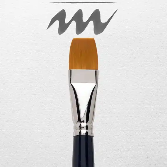Este pincel para acuarela está elaborado con cuidado y modelado a mano. Su pelo es flexible y resistente al desgaste. El pelo sintético dorado puede absorber una gran cantidad de agua y tiene una forma plana (Gussow) para definir los planos y la forma en una pintura de figuras o para crear líneas a modo de cincel. Las cerdas de este pincel tienen un ancho de 22,0 mm