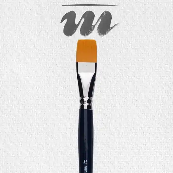 Este pincel para óleo y acrílico está elaborado con cuidado y modelado a mano. Su pelo es flexible y resistente al desgaste. La flexibilidad del pelo sintético dorado hace que este pincel sea especialmente adecuado para la pintura con acrílico, ya que los colores acrílicos se utilizan normalmente en una consistencia más licuada. Este pincel tiene cerdas planas (Gussow) para crear bordes afilados y líneas rectas. Las cerdas de este pincel tienen un ancho de 22,0 mm