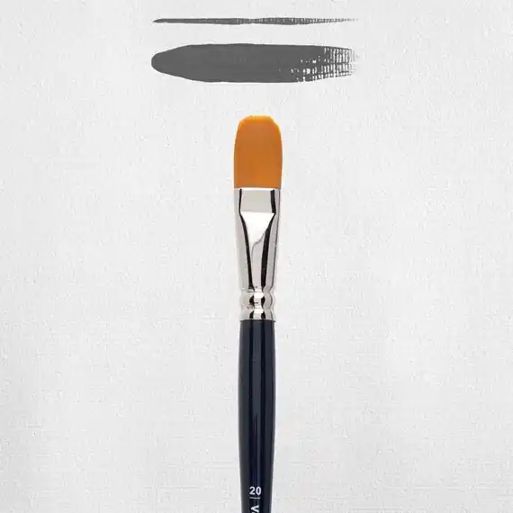 Este pincel para óleo y acrílico está elaborado con cuidado y modelado a mano. Su pelo es flexible y resistente al desgaste. La flexibilidad del pelo sintético dorado hace que este pincel sea especialmente adecuado para la pintura con acrílico, ya que los colores acrílicos se utilizan normalmente en una consistencia más licuada. Este pincel tiene cerdas en forma de lengua de gato (filbert), lo que une las ventajas de los pinceles planos y los redondos, dándote un gran control sobre la pintura. Las cerdas de este pincel tienen un ancho de 16,8 mm