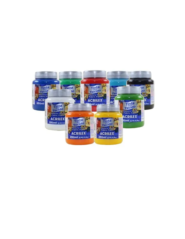 Pintura para tela Acrilex textil 250MLYa puedes comprar en España Acrilex, La mejor relación calidad precio, el mayor surtido y una calidad contrastadaEnvase grande de 250ml. Ahorra comprando los colores que más utilices para pintar en tela, camisetas, bolsas, etc.Colores vivos, de acabado mate y muy resistentes a los lavados, más de 100 colores mezclables entre si, listo para su uso y no es necesario fijar con planchaTambién disponible en envase de 37 y 120mlSelecciona color y cantidad en la parte inferior de la página