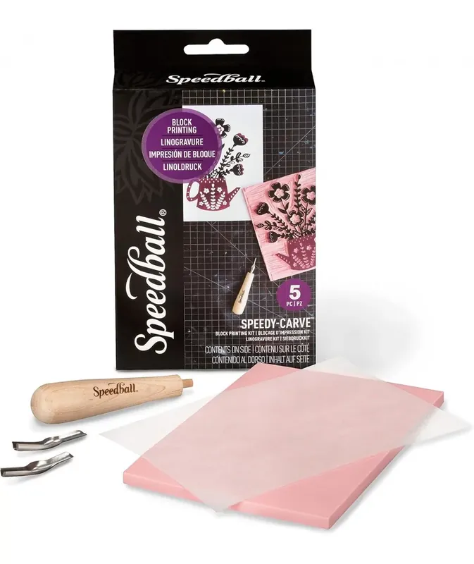 Conjunto de la marca Speedball básico para iniciarse en el mundo del grabado en bloques de goma y vinilo.Contiene:Mango para linóleo de maderaCuchillas para cortar linóleo o bloques de goma nº 2 y 4Bloque de grabado Speedy Carve de 4 x 6 pulgadas (10,16 x 15,24 cms.)Papel de calco y hoja de instrucciones