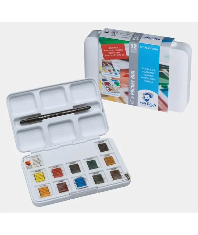 Caja de acuarelas básica de la marca Van Gogh con 12 colores (calidad media)Cuando esté disponible se enviará por el mismo precio la oferta de 12+ 3 pastillas gratis al precio de 12Una caja perfecta para iniciarse en el mundo de la acuarela para todo tipo de personas : adultos,niños,adolescentes,estudiantes,aficionados…Reducido tamaño lo que la hace idónea para llevar contigo a viajes o cualquier lugar donde quieras hacer unos bocetosRecambios sueltos disponibles