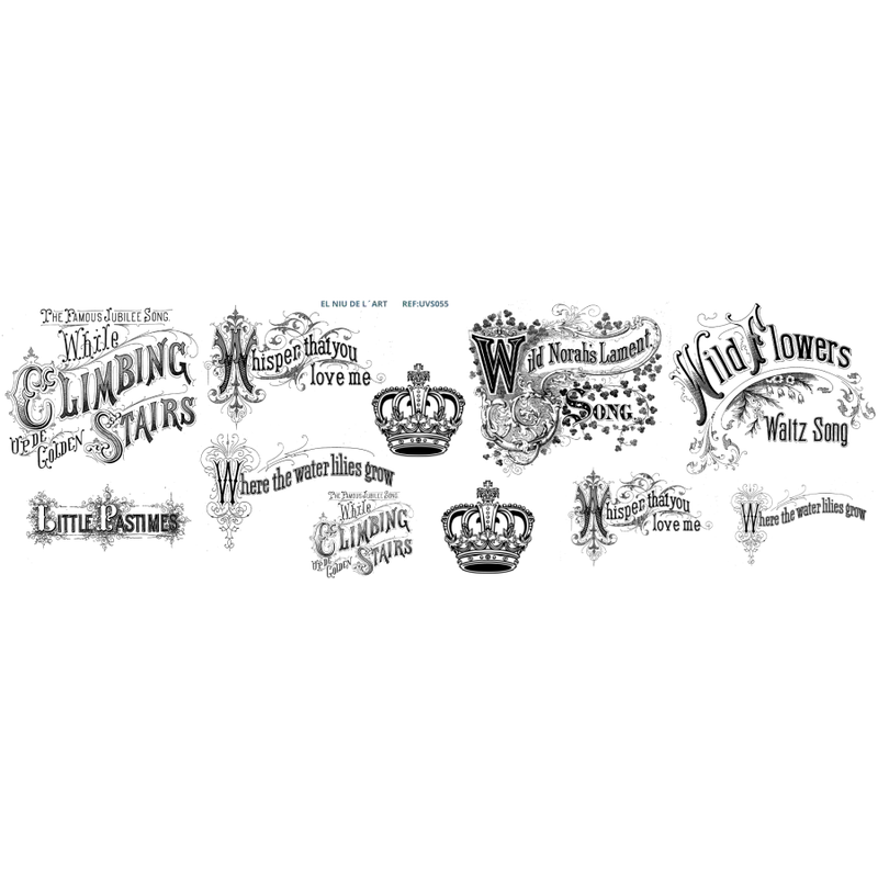Transfers UV especialmente diseñados para pegar en papel y cartón, para tus proyectos de scrapbook, solo tienes que presionar un poco y retirar la pelicular protectora. trasnfers con relieve y brillo