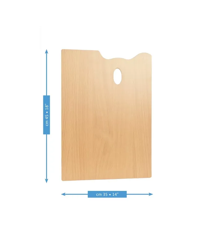 Paleta de la marca Mabef con forma rectangularTamaño 35 x 45 cms.Agujero para la mano biseladoElaborada con fibra de madera y un buen acabado satinado para que se quite mejor la pintura.Recomendada para pinturas al óleo