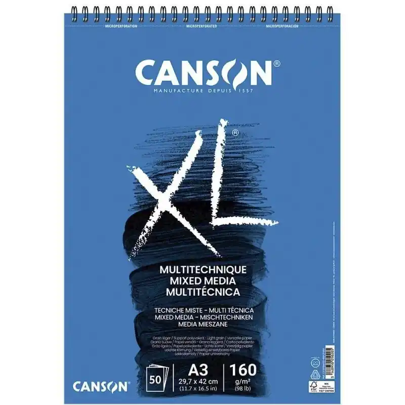 Bloc Mix Media Multi técnicas 160 gr. A3.Perfecto para todo tipo de técnicas, acuarela, acrílico, pastel, lápiz, mix media, etc.Grano ligero.Tamaño A3 con espiral y hojas microperforadas.