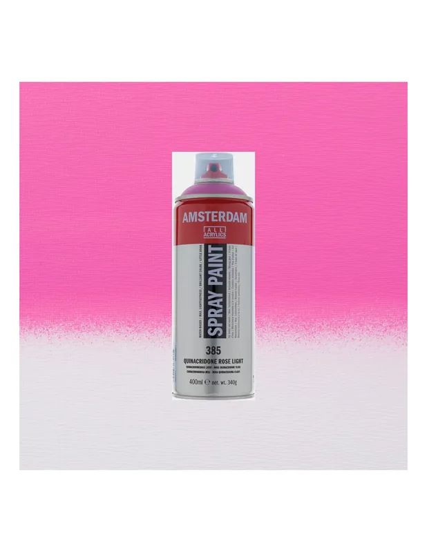 Nuestras pinturas en espray, a diferencia de las pinturas en espray tradicionales, son ideales para su uso en el estudio por su fórmula a base de agua.SPRAY AMSTERDAM 400ML 385 ROSA QUINACRIDONA CLARO