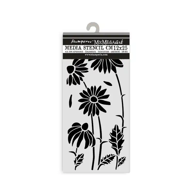 Stencil Stamperia Mix Media Art 25 x 12 cm. – DaisiesIdeal para todos los proyectos, especialmente para Mix Media por su grosor de 0.5 mm.Las máscaras son elementos muy versátiles y que dan mucho juego, tanto en el mundo del scrapbooking como en el del Mixed Media. Con ellas puedes hacer un montón de cosas: crearte tus propios fondos, tus propios adornos, texturas… Puedes usarlas con tintas en spray, con tintas Distress y sus aplicadores, estarcido con purpurina, pigmentos o Perfect Pearls, aplicarles gesso o pasta de relieve… ¡Cuando empieces a cogerles el gusto no sabrás vivir sin ellas!