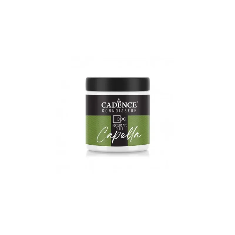 Capella es una pasta de relieve acrílica a base de agua, de textura fina, que no se agrieta y es semimate. Se utiliza sobre lienzo, paredes y superficies duras para crear efectos dimensionales. Se puede aplicar con espátula, llana, plantilla, arte de texturas y técnicas de estilo libre. «Se puede añadir pintura acrílica sin alterar la consistencia o pintar encima después del secado. Se seca en 24 horas según su espesor y las condiciones climáticas. Debido a su textura dura cuando está seca, no es adecuada para lijar». Se produce de acuerdo con las normas europeas (normas CE y EN71) y no es tóxica.
