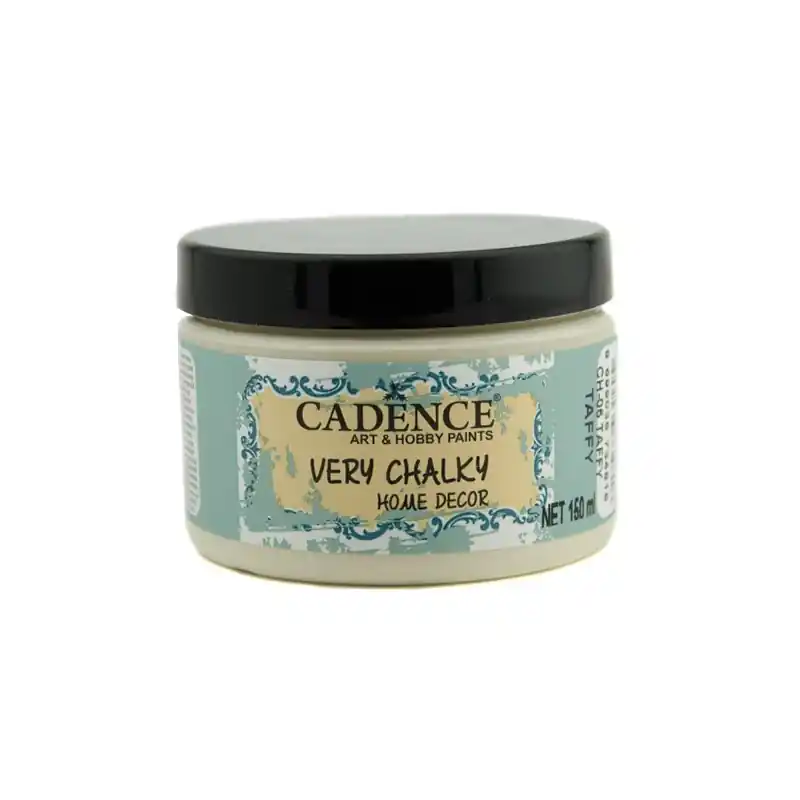 VERY CHALKY Taffy 150ml.Pintura tiza de CADENCE con base al agua de acabado sedoso super mate, con su característico efecto desgastado muy suave aporta una apariencia Vintage o Shabby Chic. Cubre facilmente con una sola capa sobre la mayoría de superficies lisas sin necesidad de imprimación o lijado previo. De secado muy rápido. Finaliza o protege las superficies pintadas con ayuda de barnices mate, ceras transparentes o de color, según el acabado deseado.Limpieza de utensilios con agua y jabón.No tóxica.Dispone de certificación europea CE y EN71